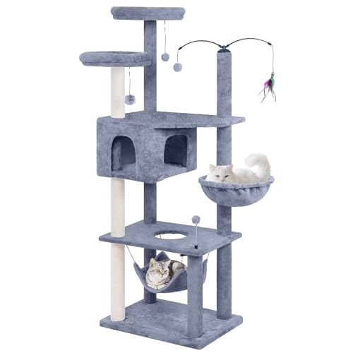 Heybly Cat Tree, 70 inches Tall Cat Tower Condo with Toy for Indoor Large Cats, Cat House Furniture with Padded Plush Perch, Cozy Hammock and Sisal Scratching Posts, Smoky Gray HCT032G
